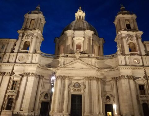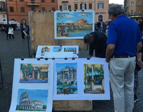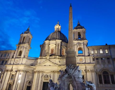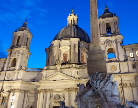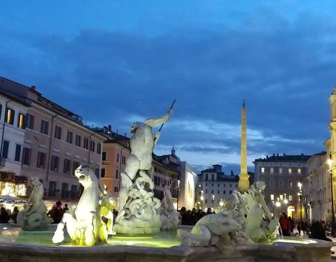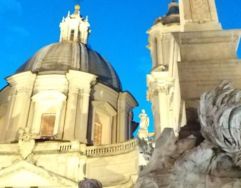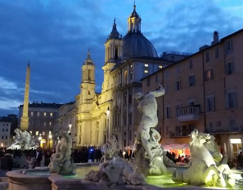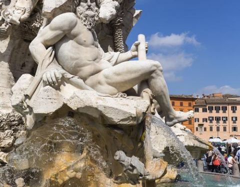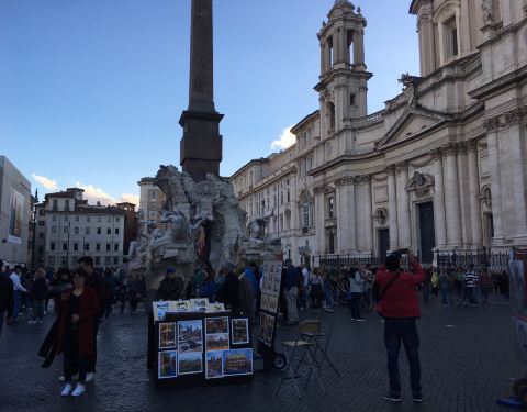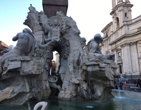 在纳沃纳广场欣赏贝尔尼尼的作品四河喷泉。