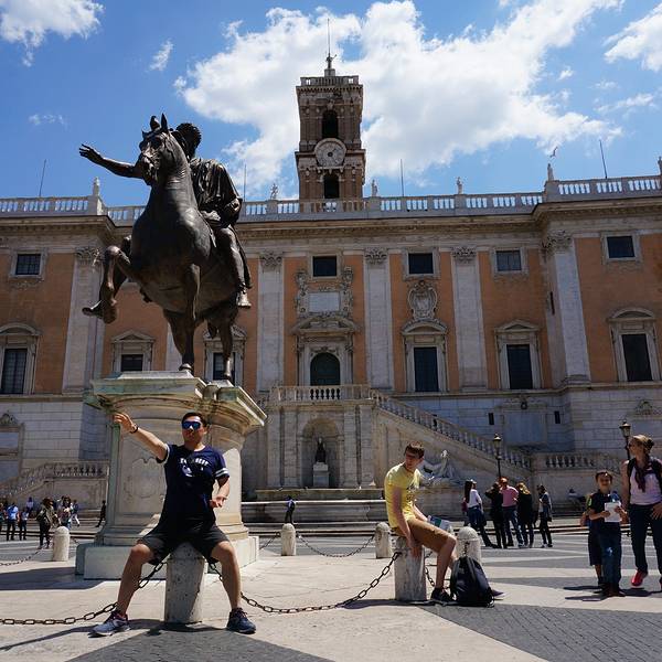 卡比托利欧广场又称罗马市政广场,卡比托利欧山也是罗马七座山丘之一,这里是历史上罗马的市中心卡比托利欧广场又称罗马市政广场,卡比托利欧山也是罗马七座山丘之一,这里是历史上罗马的市中心。骑马的像是罗马五贤帝之一的马克奥里留,两个牵马的雕像分别是双胞胎,卡斯托尔和波吕克斯。这里也是当地人喜欢...卡比托利欧广场又称罗马市政广场,卡比托利欧山也是罗马七座山丘之一,这里是历史上罗马的市中心。骑马的像是罗马五贤帝之一的马克奥里留,两个牵马的雕像分别是双胞胎,卡斯托尔和波吕克斯。这里也是当地人喜欢在这里拍婚纱或者办婚礼的地方。 展开