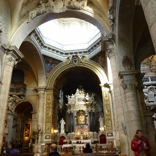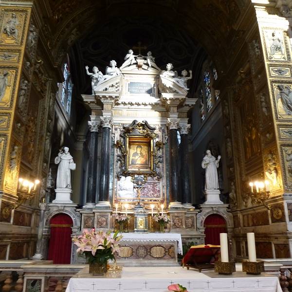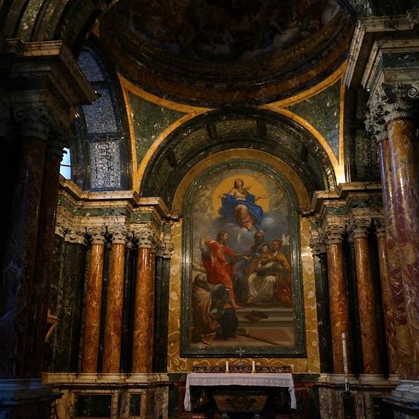 人民圣母教堂( Popolo)位于人民广场北面,是一座著名的圣奥古斯丁会教堂,内部收藏有拉斐尔•圣齐奥、济安•贝尼尼、卡拉瓦乔、亚历山德罗•阿尔加迪(Alessandro Algardi)、安德烈•布莱德诺(Andrea)等人的作品。拥有这么多艺术品的教堂,竟然免费对外开放!
