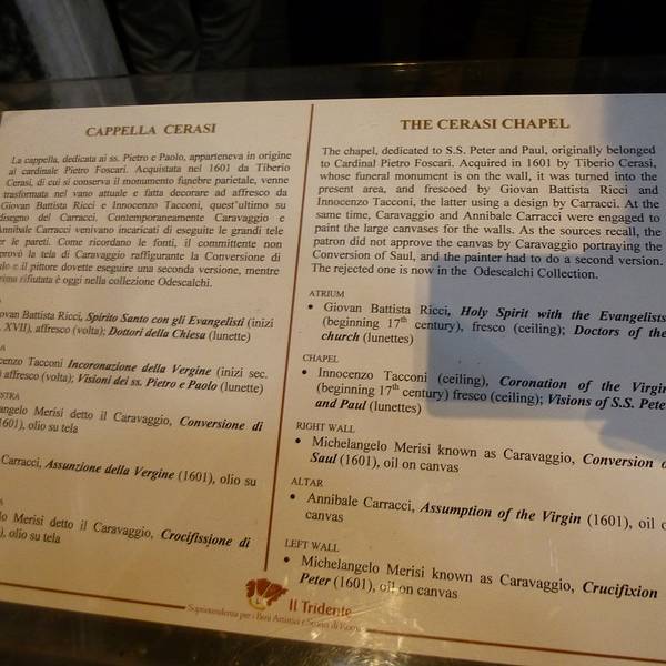 内有很多布拉马特、贝尼尼、卡拉巴乔的作品,包括卡拉瓦乔的两幅杰作——《圣保罗的皈依》(The Conversion on the Wayto Damascus)和《圣彼得被钉上十字架》(Crucifixion of Saint Peter) 展开