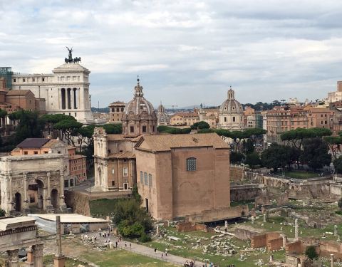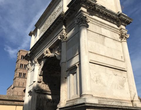 古罗马广场上现在留存有两座凯旋门,这是其中之一。在一个角落里面,凯旋门看上去现在不是特别的高大,但是那种透露出来的历史感还是挺让人觉得震撼的。