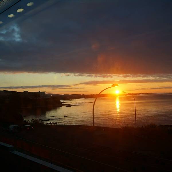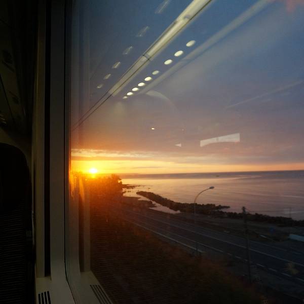 早上的火车好处在于可以看到美丽的日出,而且运气特别好还赶上了它在海上升起的刹那