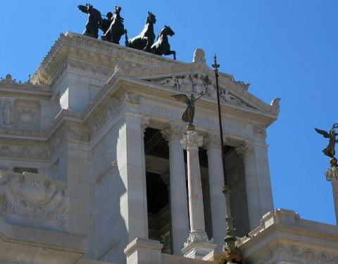 钟塔是剧院的一部分,十七世纪着名建筑师设计的,被认为是罗马巴洛克式建筑最好的例子之一。 整座建筑精美优雅,时钟装饰着维珍的马赛克,后面还有一个神殿,有天使包围的圣母玛利亚雕像群。