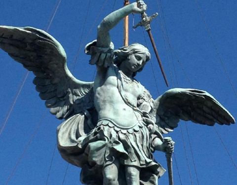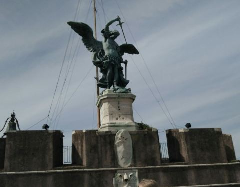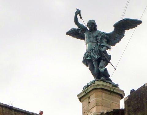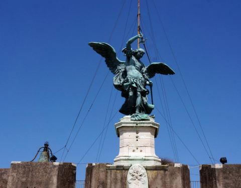 我们今天看见的位于罗马天使堡的中心最高处的这座3.3米高的雕塑,是1753年由Peter Anton Van Verschaffelt 制作的。这座雕像的历史要追踪到公元590年的罗马,最初是木头制作的很快就毁坏了,后来换成了大理石的,...