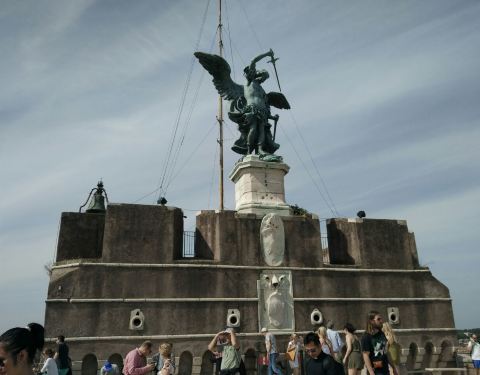 位于城堡最顶端的是迈克尔的这个青铜雕像,从地面观察并不能让游客了解其真实尺寸。 为了实现这一点,必须进入卡斯特尔然后缴纳费用爬上几层楼梯,到达屋顶区域。 从那里,可以看到天使和罗马市的美景。