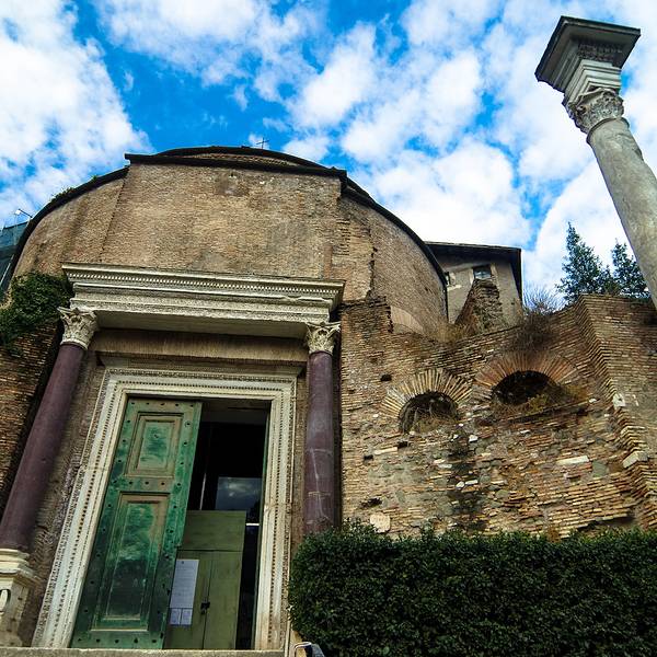 罗马的起源就是罗慕路斯哥们儿两,传说是狼奶喂养的两兄弟,在帕拉迪诺山顶能看到两兄弟喝狼奶的青铜雕像。所以来到罗马,不知道罗慕路斯是不可原谅的。神庙的门是四世纪的遗物。后来由于防水,把台基提高很多,现在望去也是灰常的高大上。