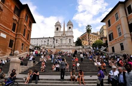 ...,那冰激凌拍照的人比比皆是,但更多的是席地而坐的疲劳的游客,西班牙台阶上什么时候来都是人满人患因罗马假日的拍摄名噪一时的台阶,就在西班牙广场上,那冰激凌拍照的人比比皆是,但更多的是席地而坐的疲劳的游客,西班牙台阶上什么时候来都是人满人患~想要拍没有人的景色,大概只能凌晨5点过来才行。