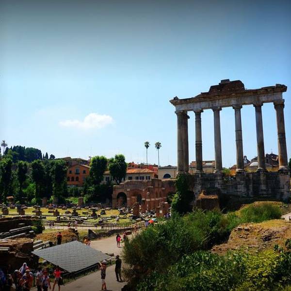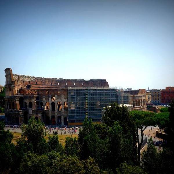 帕拉蒂尼(Palatino)曾是古罗马周边最豪华富丽的地方。贵族们都想方设法在此造房筑屋,而代代君主们更是在此兴建越来越奢侈的宫殿。但在罗马衰落以后,帕拉蒂尼因年久失修,日渐荒芜。今天的帕拉蒂尼基本为皇帝图密善(Domitian)的行宫遗迹而复归。这个行宫结构复杂,面积巨大,作为主要的皇宫长达300年。 这里有观景平台可以看斗兽场和凯旋门,是最高点,入口较隐蔽,且要爬山,我和其中一个小伙伴决定前往,另外两个人在树下乘凉。话说帕拉蒂尼的废墟比古罗马广场的遗址混乱,如果时间不够,可以直接跳过这里,去旁边的古罗马遗址游览。 罗马废墟(Roma Forum)是古罗马时代罗马城的中心地区,即使现在成为一片废墟,也依然让人唏嘘不已。 古罗马帝国市民活动和祭祀的区域,现存各个伟大神庙的遗迹,不论是在建筑还是考古方面都有伟大的意义。逃离拥挤的人群,我们再次深入斗兽场,从二楼的角度来看他。如今的竞技场只有一半木板覆盖,另一半展示了竞技场下层迷宫似的通道和当年把动物和角斗士从牢笼运送到竞技场的机械装置。