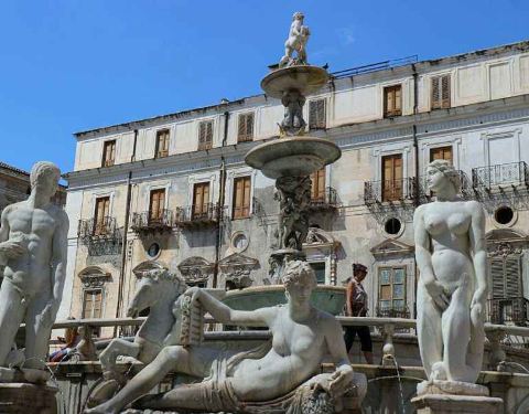 普雷托利亚喷泉又名羞耻之泉,位于普雷托利亚广场,这座喷泉是400多年前从佛罗伦萨运来,但因为四座赤裸女性的雕像,令当地淳朴的百姓感到难以接受,因此被称为羞耻之泉。它是巴勒莫著名的景点,规模很大,很容易就能找到。