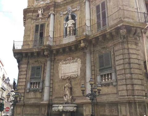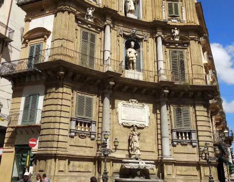 巴勒莫是在西西里岛,这个地方非常舒适,四角场是巴勒莫的中心地带,这里有点非常多,四角场的四个地方都有雕刻,可以关注一下这里的历史!