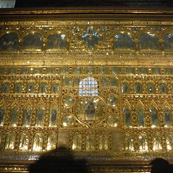 但是它看起来真的是美丽的,因为背景是代表威尼斯财富的颜色的金色。它是有机会一定要看的一处景点从外面看令人印象深刻,在里面看令人叹为观止。 内部镶嵌着马赛克,未经允许,不得观看。但是它看起来真的是美丽的,因为背景是代表威尼斯财富的颜色的金色。它是有机会一定要看的一处景点。