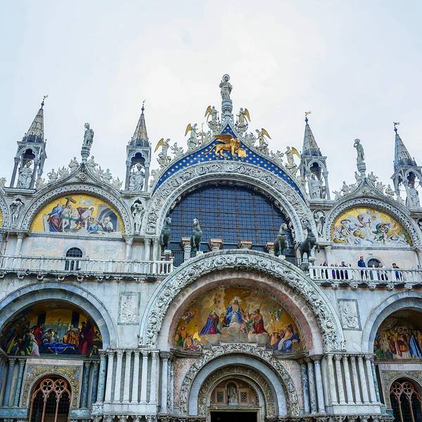 教堂是可以付费参观的,里的装饰据说很美,而且收藏了许多丰富的艺术品圣马可大教堂位于威尼斯的圣马可广场,始建于828年,在11世纪的时候曾经因为火灾而重建,不过也有超过100年的历史了。教堂因为埋藏着圣马可的遗骸而得名,曾经是欧洲中世纪最大的教堂。整个教堂非常恢弘,采用拜...圣马可大教堂位于威尼斯的圣马可广场,始建于828年,在11世纪的时候曾经因为火灾而重建,不过也有超过100年的历史了。教堂因为埋藏着圣马可的遗骸而得名,曾经是欧洲中世纪最大的教堂。整个教堂非常恢弘,采用拜占庭式建筑风格,结合了东西方建筑精华。教堂是可以付费参观的,里的装饰据说很美,而且收藏了许多丰富的艺术品。我们只是外观,不过即使是教堂的外观,也可以感受到它的华美。拱形的罗马式大门,顶部东方式与哥德式尖塔及各种大理石塑像、浮雕对花形图案,都很值得一观。 展开