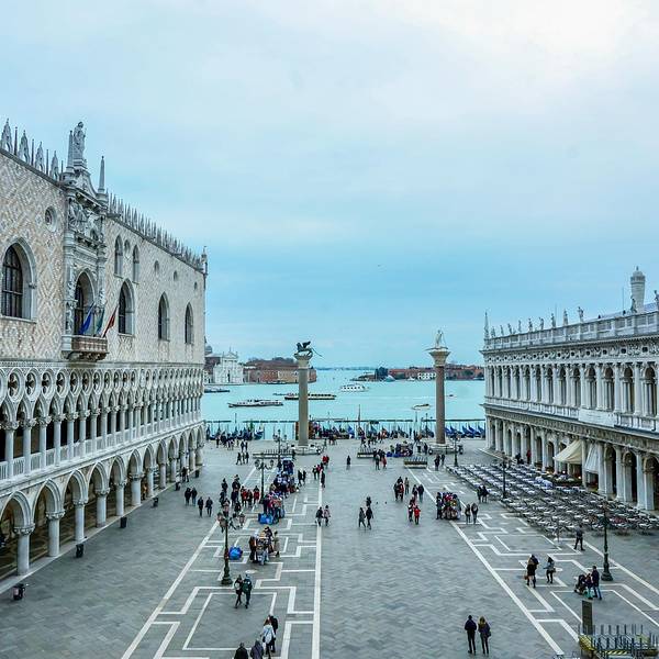 室外回廊可以拍照,一旁的钟楼、总督府尽收眼底,还能远眺大运河的风光,实在令人沉迷。站在回廊看风景这里是威尼斯的中心,也是威尼斯的荣耀和信仰。