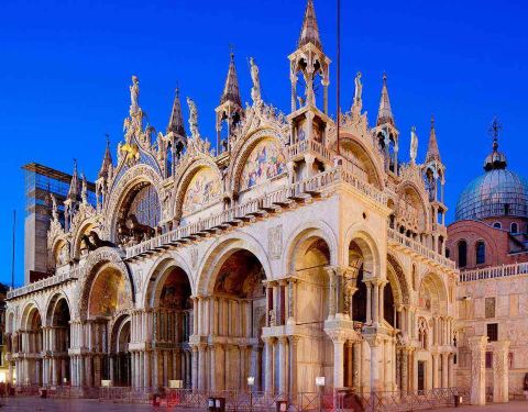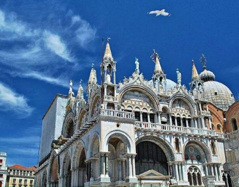 金骆驼 它曾是中世纪欧洲最大的教堂,威尼斯建筑艺术的经典之作,同时也是一座收藏丰富艺术品的宝库圣马可大教堂是威尼斯守护神圣马可的安息之处。它曾是中世纪欧洲最大的教堂,威尼斯建筑艺术的经典之作,同时也是一座收藏丰富艺术品的宝库。教堂建筑遵循拜占庭风格,总体呈希腊十字形造型,上覆5座半球形圆顶。