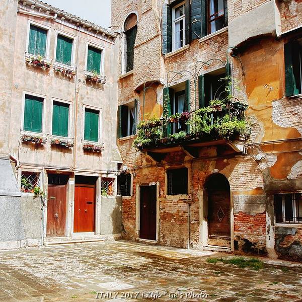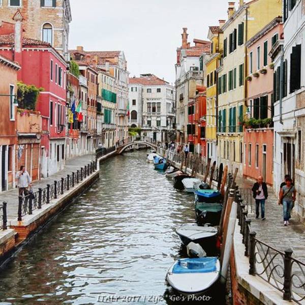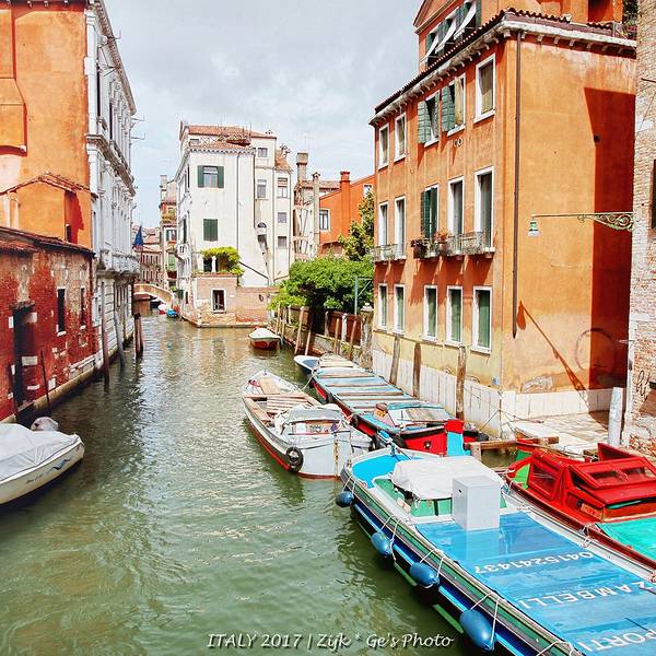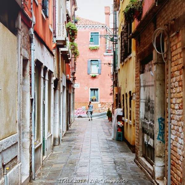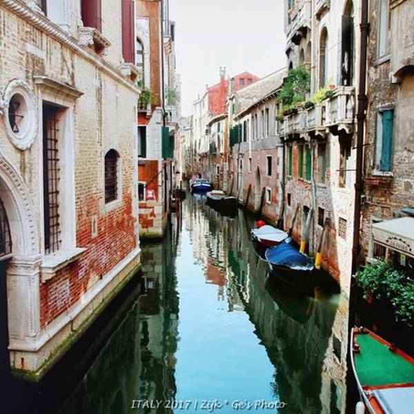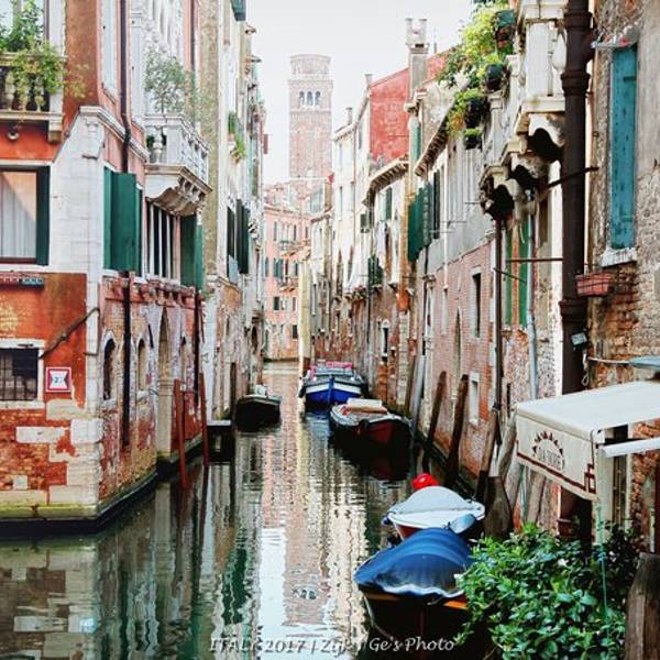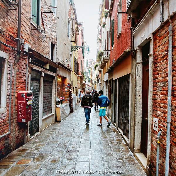 但最重要的一点是主岛上的交通工具只有船,无任何车辆。所以住在主岛的话就要拖着行李走在中世纪碎石小路上,还有路过无数的台阶和小桥。虽然浏览景点比较方便,但想必把行李拖到达酒店也累的不行了。出了火车站,我们就被人山人海的游客吓到了。照片里中间扁平的米色建筑就是威尼斯主岛火车站Santa Lucia,来往行人之多基本等同于我们国内的火车站。像我之前说的,如果住在本岛,出了火车站可以选择坐游船或小船到达酒店附近,剩下的路就要自己拖着行李11路了。整个城内都是错综复杂的小胡同,并排走2-3个人就略挤了,加上地上都是凹凸不平的石子石砖路,对拖行李的人都是极大的考验。当然威尼斯最不缺的就是这种小船了,走在任何城中的小桥上,水道内都能看到很多停靠在家门口的小船。有的路水道两旁有步行的小路,有的只有水道完全无路可走,这也是威尼斯最独特的所在了。最特别的是这种本以为有路,结果走到头直接就是水边,就要掉头找其他路走,真的像迷宫一样。在没有水的地方,看到的都是老旧的房子,看多了欧洲的美丽小镇,这里并不出彩。