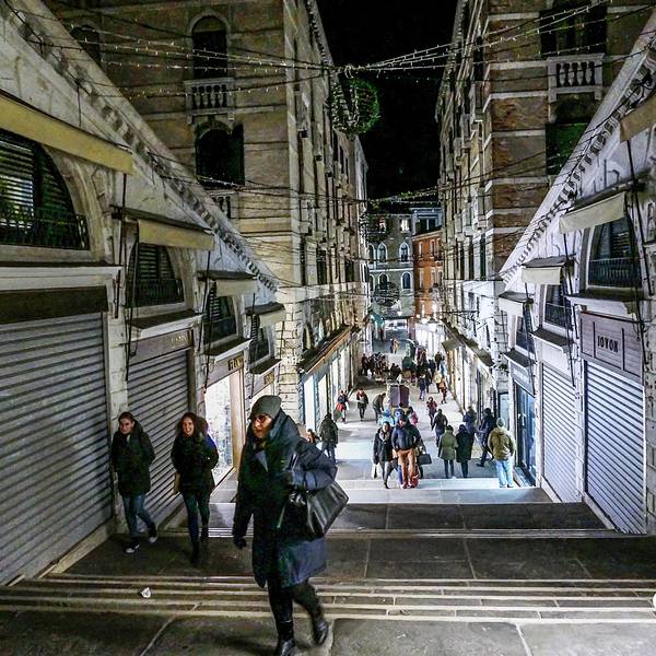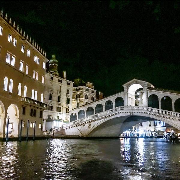 想要游览大运河的夜景,最好的选择便是搭乘公交船。桥上的夜景其实挺一般的威尼斯大概有好几百座桥吧,除了叹息桥,另一座最负盛名的应该就是里亚托桥了。