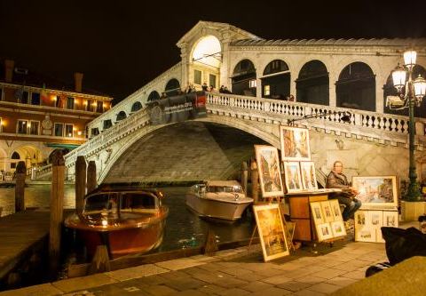桥身全部用白色大理石筑成,横跨在大运河之上,两侧商铺林立,白天的时候总是人潮涌动,据说莎士比亚的名作《威尼斯商人》,便是以此为背景。