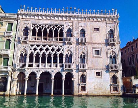 大运河上最美的宫殿,欣赏曾用镀金修饰的外墙和经典哥特式建筑。