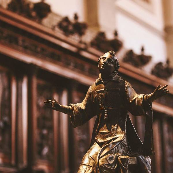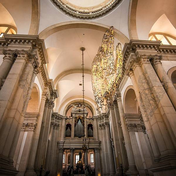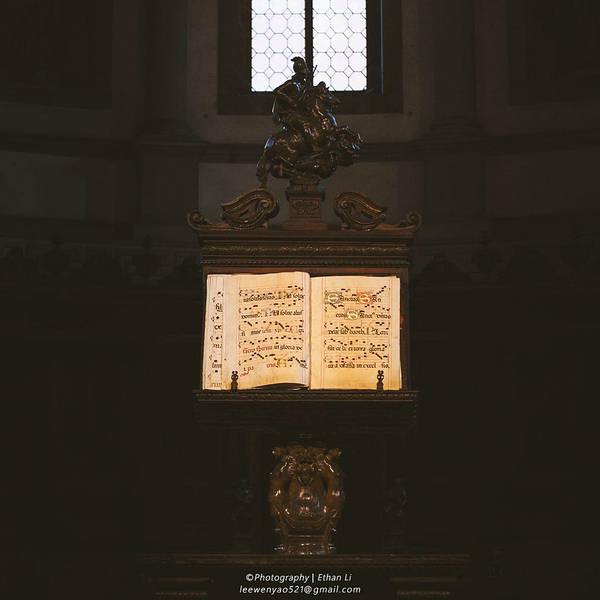 教堂里悬吊着一只金色的大手,不知道是哪国艺术家的作品,大手是由文字所构成,其中有很多中国的汉字。 展开