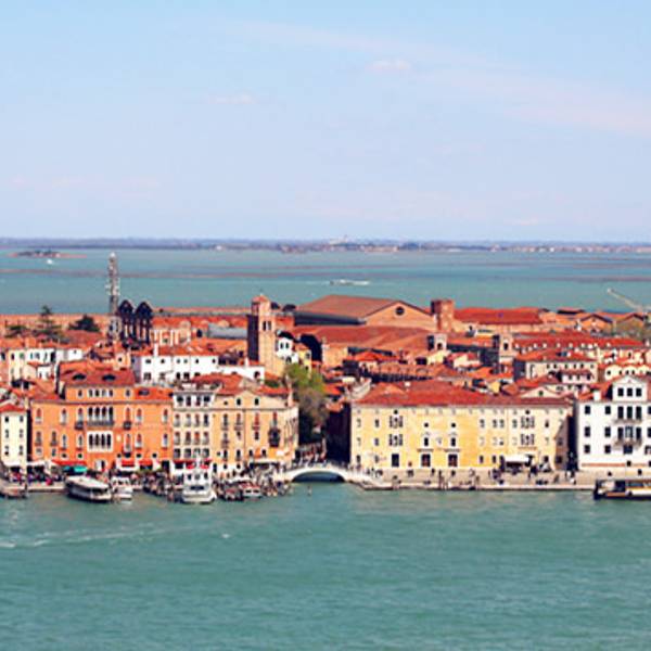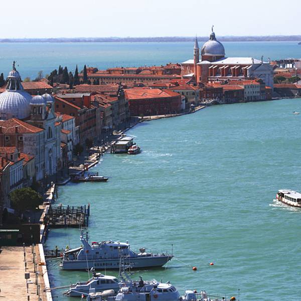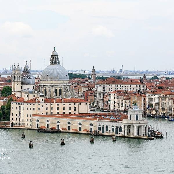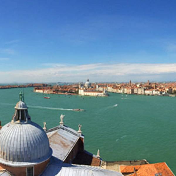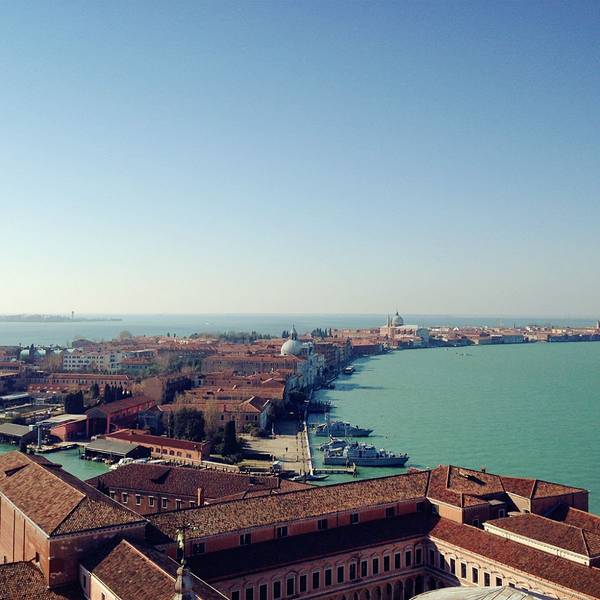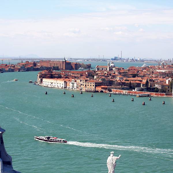 刚穿过骨架桥,就看到停泊在威尼斯港的大油轮。外岛第一站:圣乔治马乔雷教堂,站在顶端可以远眺圣马可大教堂。