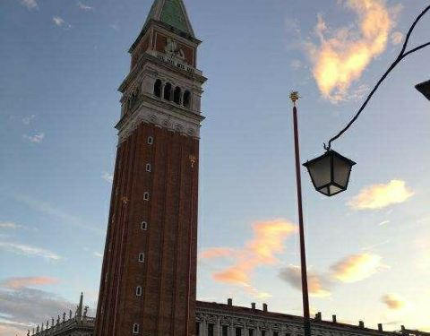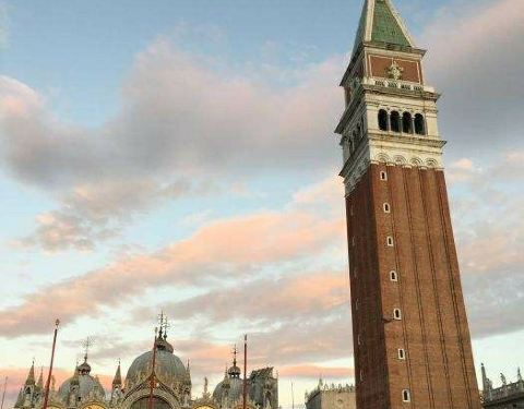 位于威尼斯圣马可广场上,也算是威尼斯的标志性建筑之一。钟塔正中央有一个黄道十二宫的表盘,钟塔上方是青铜制的摩尔人雕像,每到整点,摩尔人青铜雕乡便会敲钟报时!只是我们没等到整点报时的时候,遗憾。