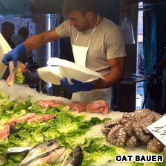The focus is on fish that arrives daily from the Rialto market. The Laguna tasting menu includes Burrata cheese ravioli with mixed seafood, fresh tomatoes and oregano.