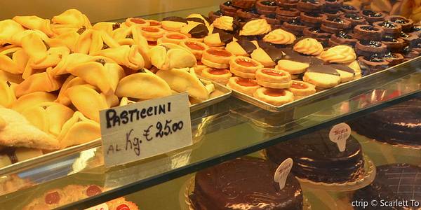 我们来这里喝过几次咖啡,都是正宗的意大利口味,他们家的新鲜水果馅饼非常受游客的欢迎。我的妻子很喜欢吃新鲜奶油酥皮饼,这里离我们居住的公寓很近,我们每隔几天就要来买一次东西。