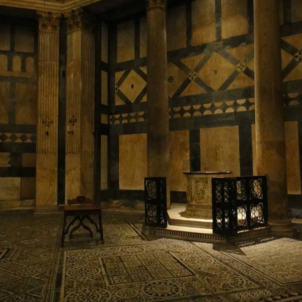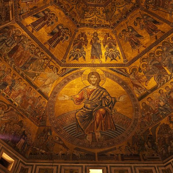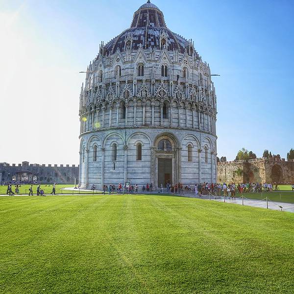 门柱上有Nicola 及Giovanni Pisano两父子精彩的雕琢,堂内圣池边有座由Nic...大教堂的对面就是洗礼堂了,于1363年建成,工程共花了近200年时间,其规模是全意最大的,罗马式和哥德式混台风格,拥有一个直径 35公尺的巨大圆顶,和四座雕刻精緻的大门,是洗礼堂外表予人的强烈印象。门柱上有N...大教堂的对面就是洗礼堂了,于1363年建成,工程共花了近200年时间,其规模是全意最大的,罗马式和哥德式混台风格,拥有一个直径 35公尺的巨大圆顶,和四座雕刻精緻的大门,是洗礼堂外表予人的强烈印象。门柱上有Nicola 及Giovanni Pisano两父子精彩的雕琢,堂内圣池边有座由Nicola Pisano雕成的讲坛,是座有800年历史的鬼斧神工,精致得令人惊讶。教堂其内部则有非常好的採光和音响效果,可以走上二楼向下拍摄洗礼堂内部全景。 展开
