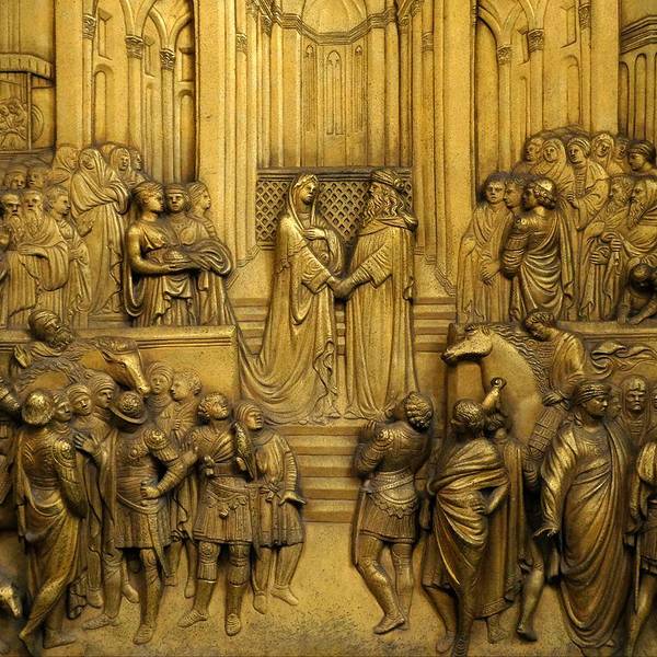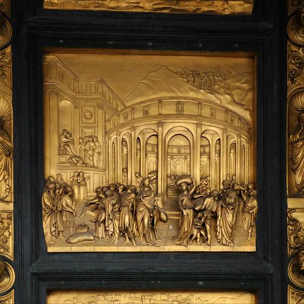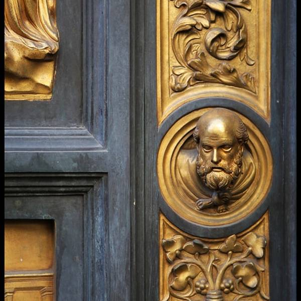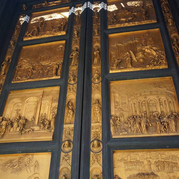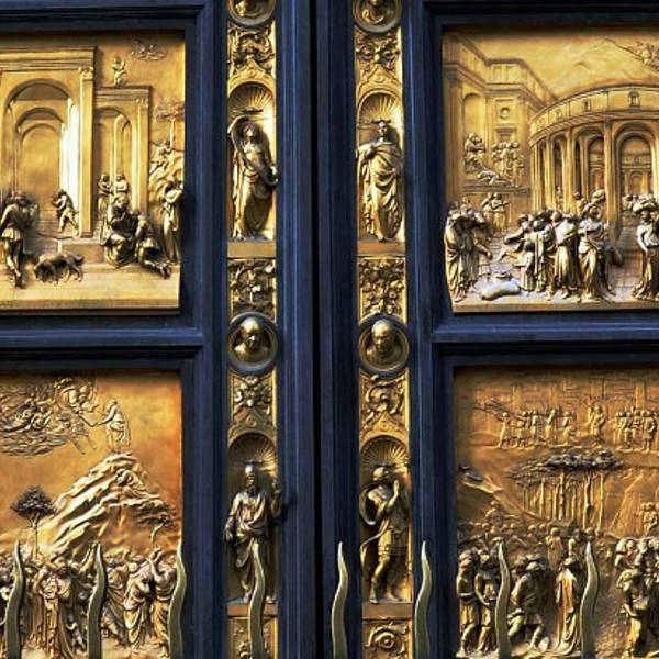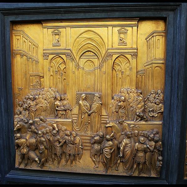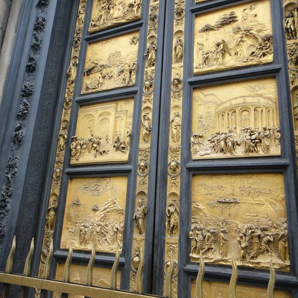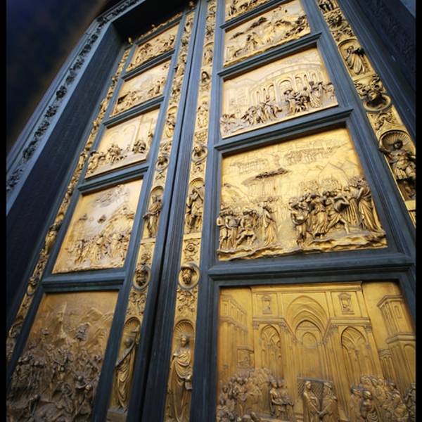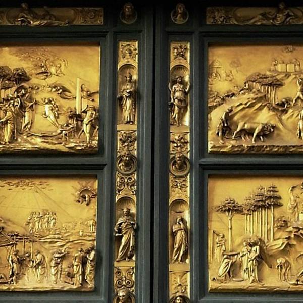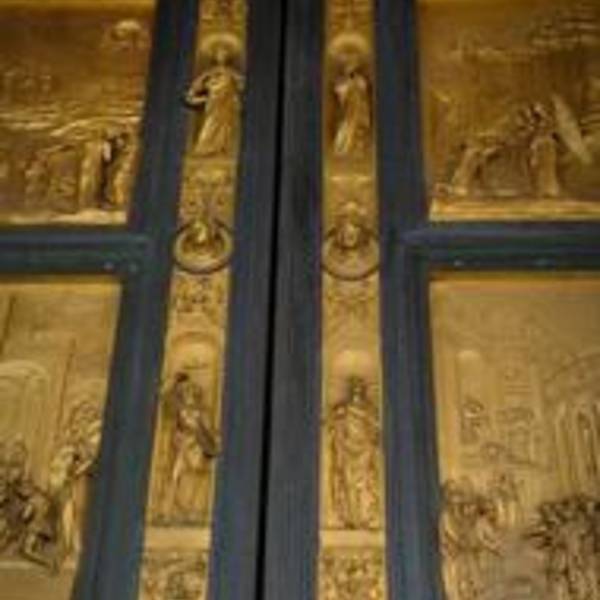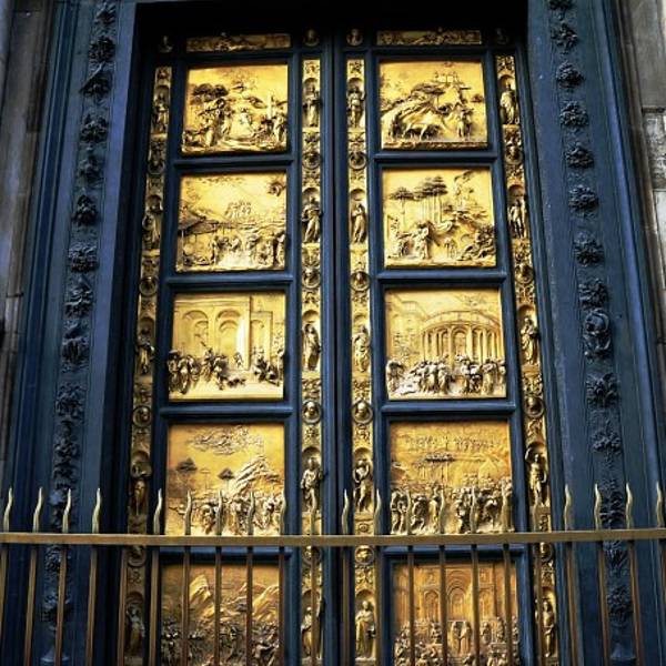 走进一看才发现原来是开门的,更意外的是昨天买的duomo门票可以通用(第一次使用后24小时内有...洗礼堂的外墙在装修,以为不对外开放,走进一看才发现原来是开门的,更意外的是昨天买的duomo门票可以通用(第一次使用后24小时内有效),赶紧进去逛一下。可看的东西不多,倒是里面放置了一块巨大的圆形玻璃花窗...洗礼堂的外墙在装修,以为不对外开放,走进一看才发现原来是开门的,更意外的是昨天买的duomo门票可以通用(第一次使用后24小时内有效),赶紧进去逛一下。可看的东西不多,倒是里面放置了一块巨大的圆形玻璃花窗,有工作人员正在为其挂上幕布,看介绍好像是要安放在圣母百花大教堂的鼓座上的。洗礼堂名气最大的其实不在里面,而是在东面的那扇被誉为“天堂之门”的青铜大门。门上的浮雕由著名的雕刻家吉贝尔蒂所设计。此人在《圆顶的故事》中时以反派大魔王的角色出现,是布鲁内莱斯基的头号竞争对手,所以人哥对他的好感度不高。然而能够成为天才对手的必然也是天才般的人物,布鲁内莱斯基恰恰是在青铜大门浮雕的竞标中不敌吉贝尔蒂,这才痛下决心投身于伟大的建筑事业中。 展开