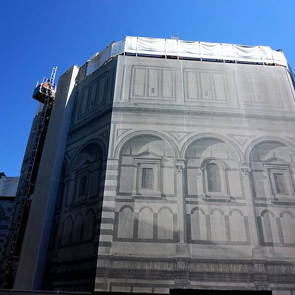 在我们实在不知道该去哪里的时候,我们选择了圣乔瓦尼礼拜堂,这是一个正确的决定。圣乔瓦尼礼拜堂是一座八角形的罗马式建筑,建于公元11世纪,因其东门(天堂之门)的镀金浮雕而出名,最近几年他都被白色的施工围挡遮罩着,里面正在进行着立面清洗。