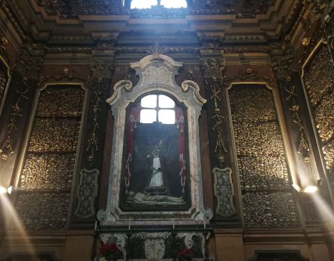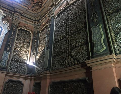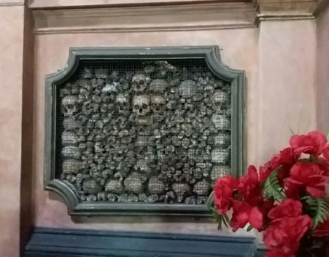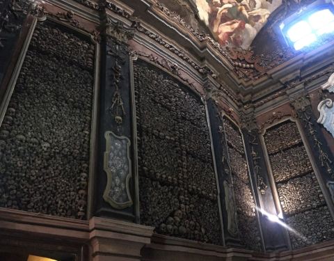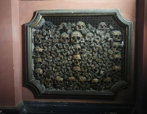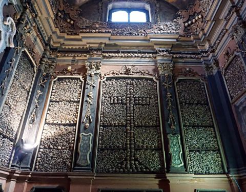 骷髅装饰墙壁和拱顶的人骨库触目惊心,令人难忘。