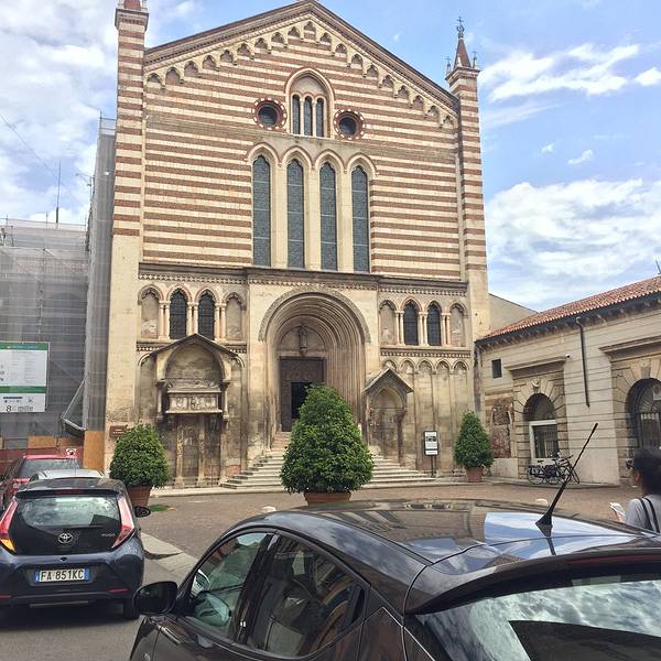 从大教堂出来附近有好几路公交车可以到达圣费尔莫教堂。 圣费尔莫教堂Chiesa di San Fermo:门票2.5欧元,维罗纳卡通用 由本笃会建造于1065年至1138年间,教堂正面展现了罗马式和哥特式两种不同的建筑风格。