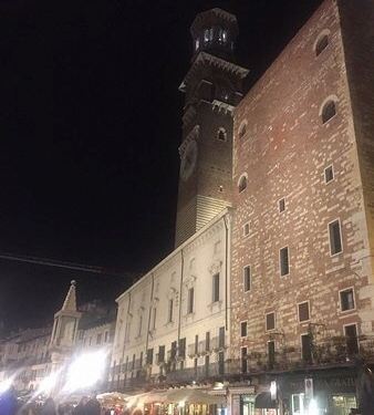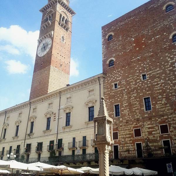 广场最高的建筑物是15世纪增健的Torre dei Lamberti兰贝儿蒂塔,高84米,可以...这里原来是个古罗马的市集,在中世纪改为一个广场,保留了当时很多古建筑,现在是非常热闹的一个摆摊聚集地,想在维罗纳买纪念品,到这里就对了。