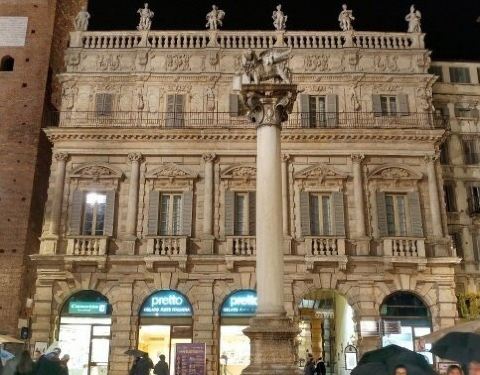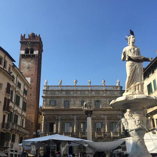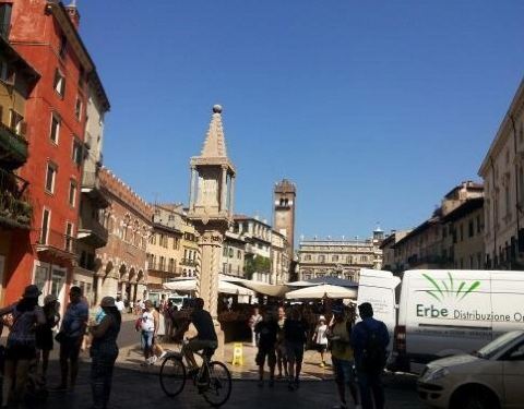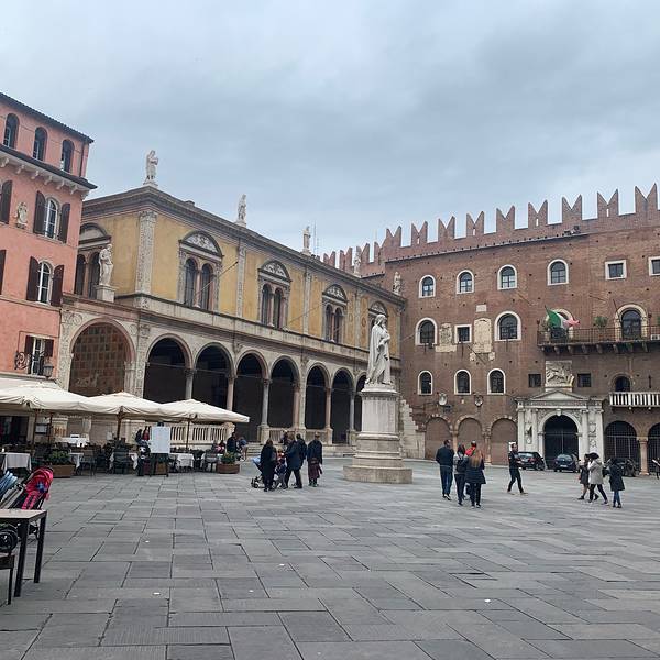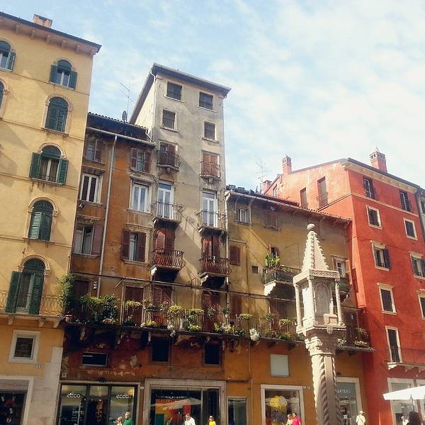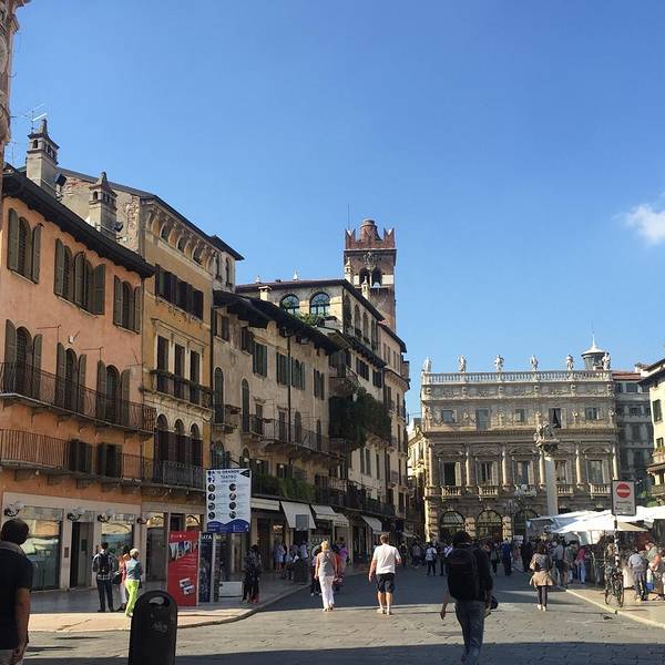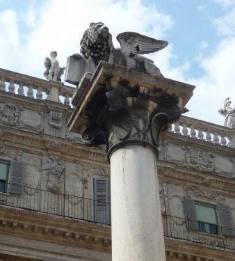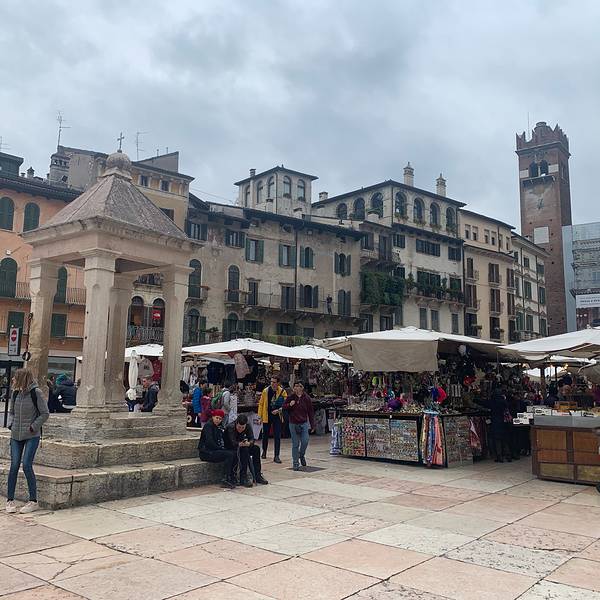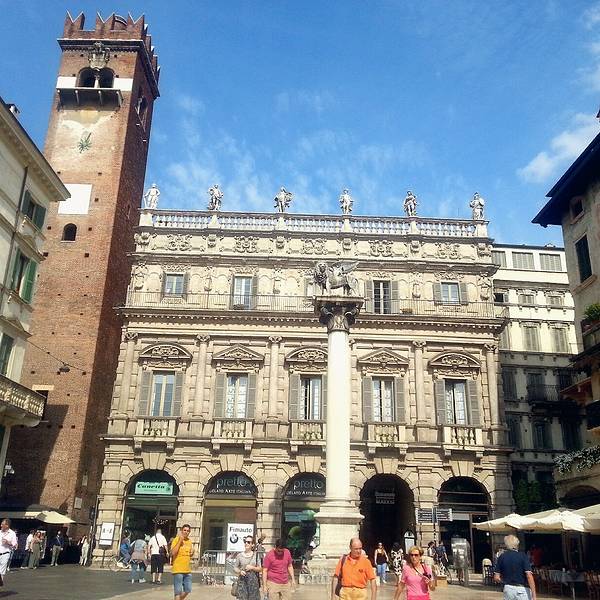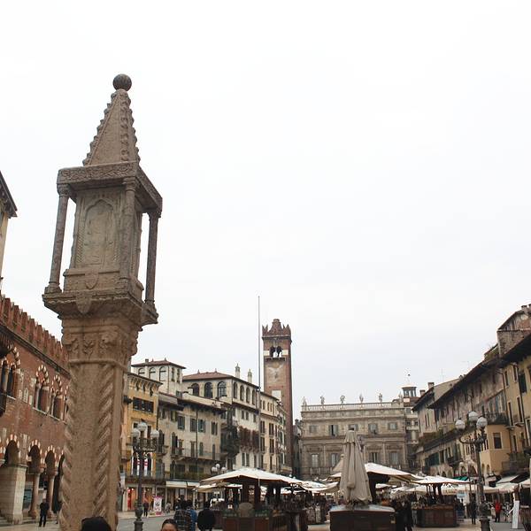 广场中间立着一个象征威尼斯统治 “有翼狮子”石柱,后方是16世...这里原来是个古罗马的市集,在中世纪改为一个广场,保留了当时很多古建筑,现在是非常热闹的一个摆摊聚集地,想在维罗纳买纪念品,到这里就对了。