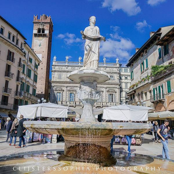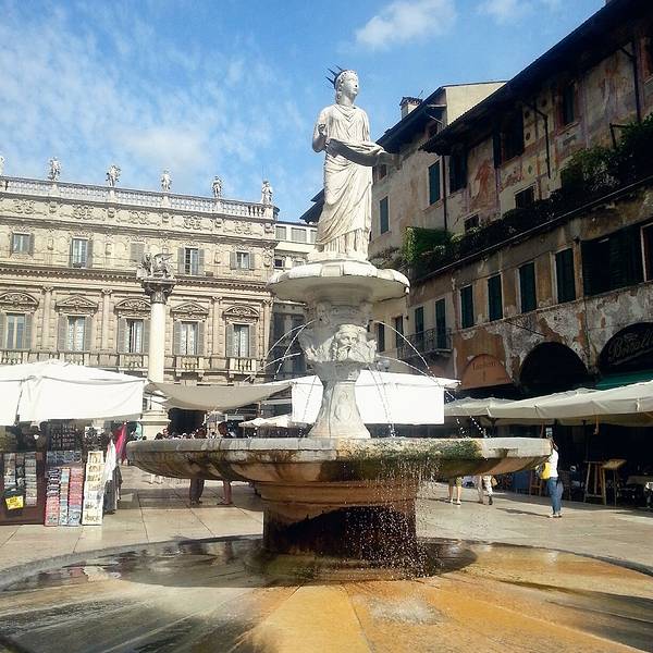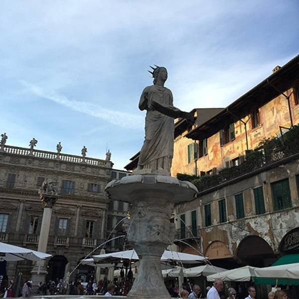 是古罗马时代,维罗纳的行政、商业中心,广场上有许多古迹,包括朗贝尔蒂钟楼、马赛宫、马赞提宫等等,最出名的要数广场中央的维罗纳圣母喷泉。