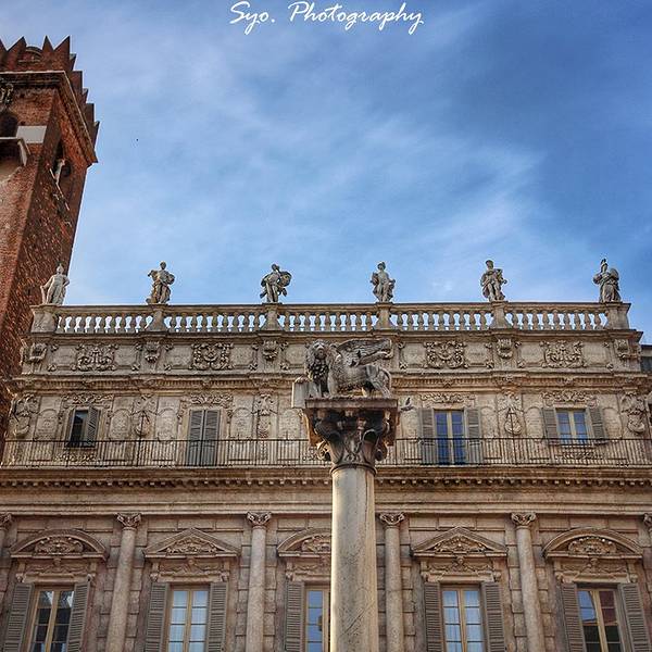 广场中间立着一个象征威尼斯统治 “有翼狮子”石柱,后方是16世纪巴洛克式宫殿Palazzo Maffei,上面有6尊罗马神话雕像:Ercole(大力士:凯格勒斯),Giove(众神之神:朱庇特),Venere(爱神:维纳斯),Mercurio(信使:墨丘利),Apollo(太阳神:阿波罗),Minerva(智慧女神:米利凡),造工非常精致。广场最高的建筑物是15世纪增健的Torre dei Lamberti兰贝儿蒂塔,高84米,可以使用Pass卡免费登顶,可惜的是,这个景点我们下午才去,刚好关门了,遗憾!!! 展开