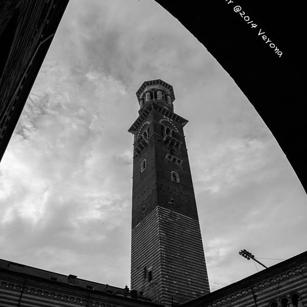 夜色下剑指苍穹的塔峰是在暗示着什么吗?高塔是兰贝尔蒂塔(Torre dei Lamberti),是维罗纳的标志性建筑之一,建于12世纪,实际上在1463年才完工。塔楼只是法理宫 Palazzo della Ragione (Palazzo Forti) 的一部分,法理宫从2007年开始成为了维罗纳的展览中心,经常举办重要的艺展。如果想更多的了解维罗纳,白天不妨去看一看,也可以登塔远眺,将整个维罗纳古城的美景尽收眼里,还可以远眺阿迪杰河两岸的美妙风光。