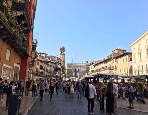 ...蒂钟楼(塔)始建于1172年,高84米,几乎相当于维罗纳的灯塔,只要看到这座塔,就能走到市中心香草广场广场上矗立着高耸的朗贝尔蒂钟楼(塔),始建于1172年,高84米,几乎相当于维罗纳的灯塔,只要看到这座塔,就能走到市中心。登上塔顶去,可以将古老的维罗纳城尽收眼底。有电梯可以到达高处,但最后一段...香草广场广场上矗立着高耸的朗贝尔蒂钟楼(塔),始建于1172年,高84米,几乎相当于维罗纳的灯塔,只要看到这座塔,就能走到市中心。登上塔顶去,可以将古老的维罗纳城尽收眼底。有电梯可以到达高处,但最后一段仍旧是狭窄的楼梯。 展开