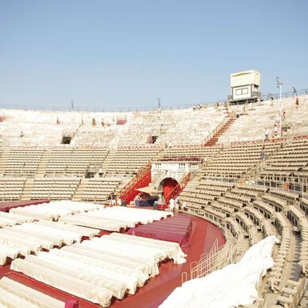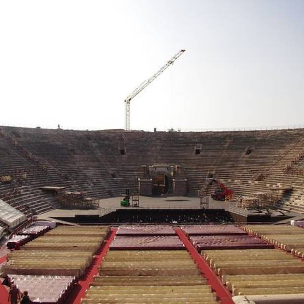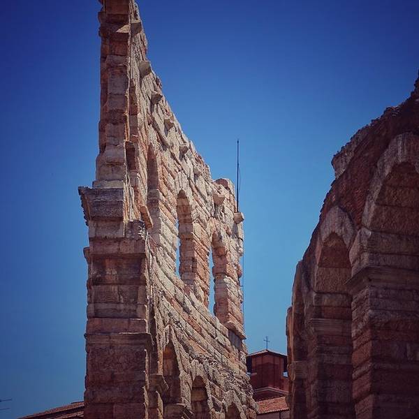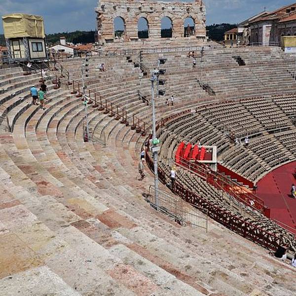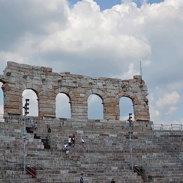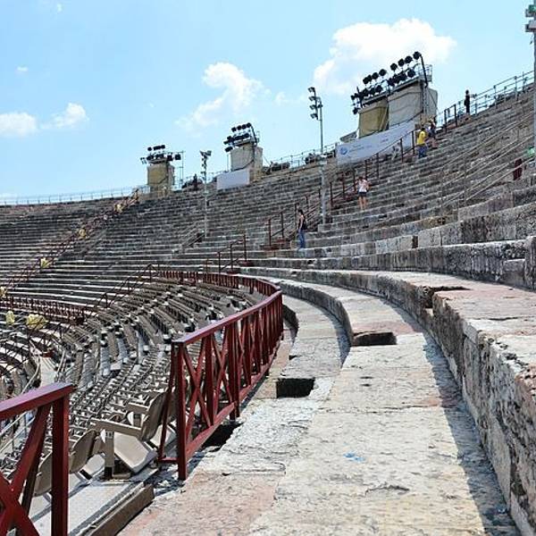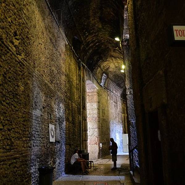 不同的是,现在这个竞技场还在使用,我们去的那天能听到竞技场里传来震撼的歌剧声跟古罗马斗兽场是不是非常的像?跟斗兽场一样,竞技场已经饱经沧桑了,历史可追溯到公元前。