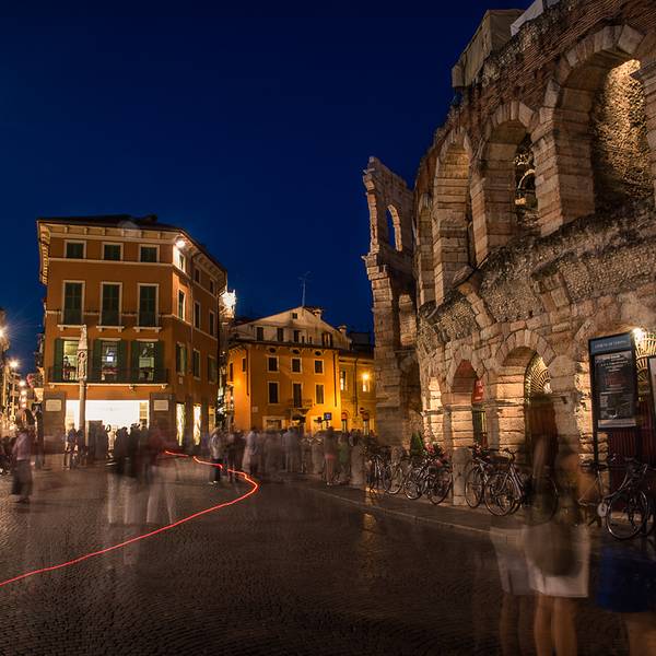 沿着布拉广场上,圆形剧场旁的各条小道直行,有能到罗密欧故居的,有能到香草广场的,其实这些景点真的距离都不远,而一路走过...圆形竞技场白天供游客参观,晚上经常会有各种表演,所以经常晚上这里也会热闹非凡。