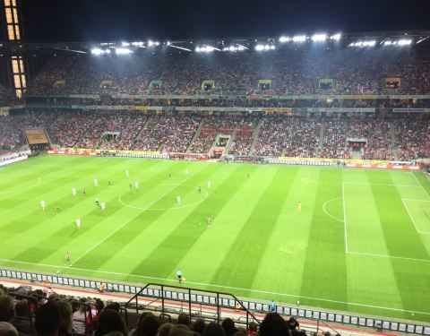 莱茵能源球场很大的一个建筑面积,这里的球场的草坪非常的精美,有很多巨大的标志性的景观。