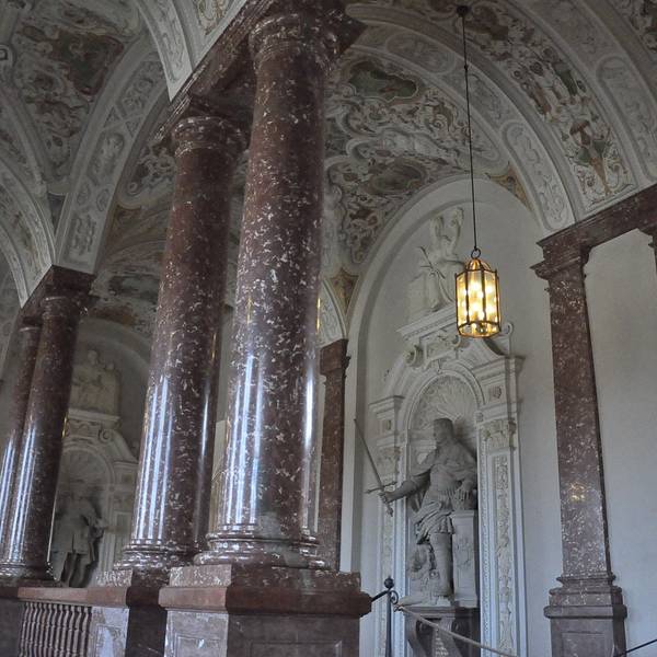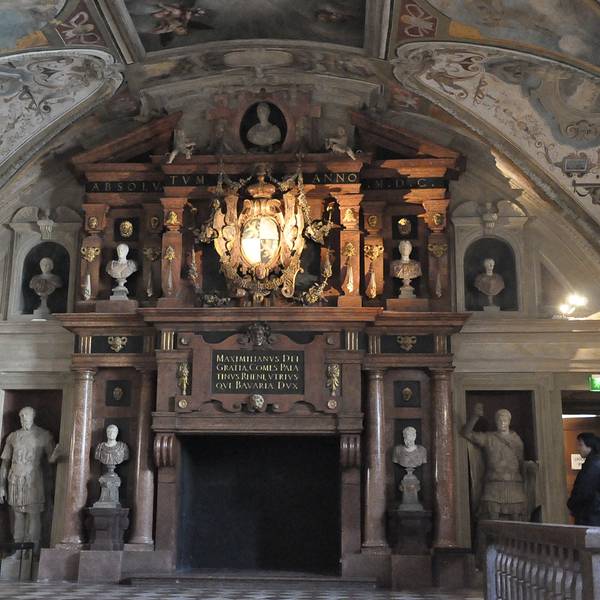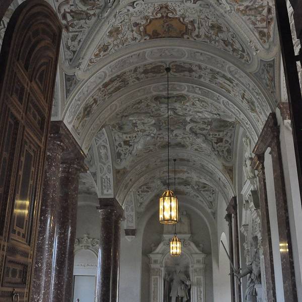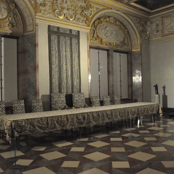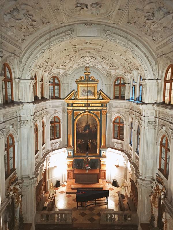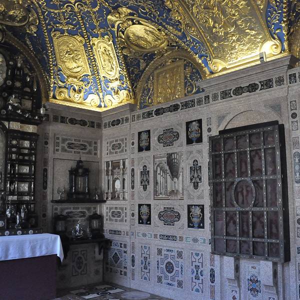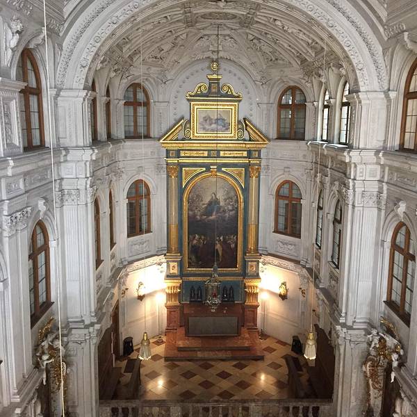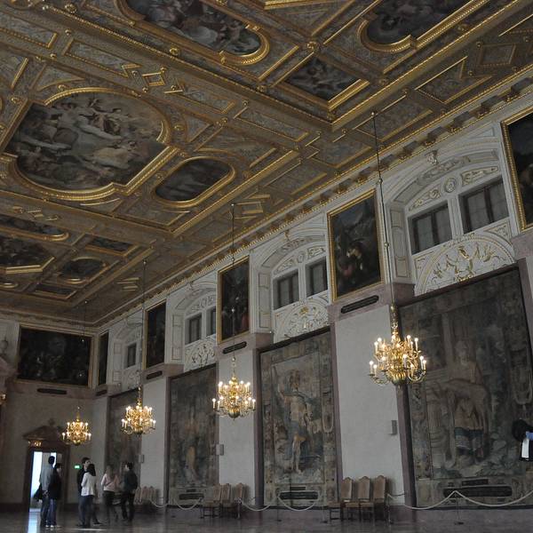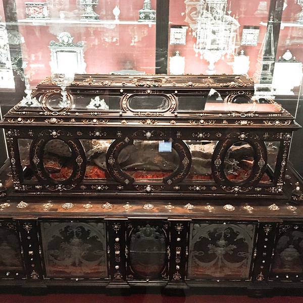 王宫博物馆最精彩的部分是“古物陈列馆”大厅,穹顶及四周都是精美的壁画,普遍被认为是阿尔卑士山北部最好的文艺复兴室内设计典范。除此之外,大多是挂满巨幅挂毯的各种会客室、卧室和小礼拜堂等等。在这里看到不少精美的中国瓷器,包括装饰用的花瓶,日常使用的经过改造的餐具等等,甚至有一间房间里全部用中国的青花瓷器来装饰,来自神秘东方的一切事物在那个年代是很时尚的。王宫博物馆附带的珍宝馆,也是不能错过的。这里按照珠宝的材质和年代等,分门别类进行展出。王室以及教廷的皇冠、珠宝、礼仪用具等等,珠光宝气,闪烁着耀眼的光辉。王宫博物馆及珍宝馆开放时间为4月1日至10月19日9:00-18:00, 10月20日至次年3月10:00-17:00(游览时间大约在三小时左右或者需要更长时间)。