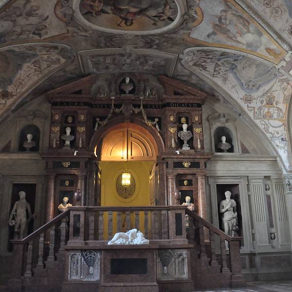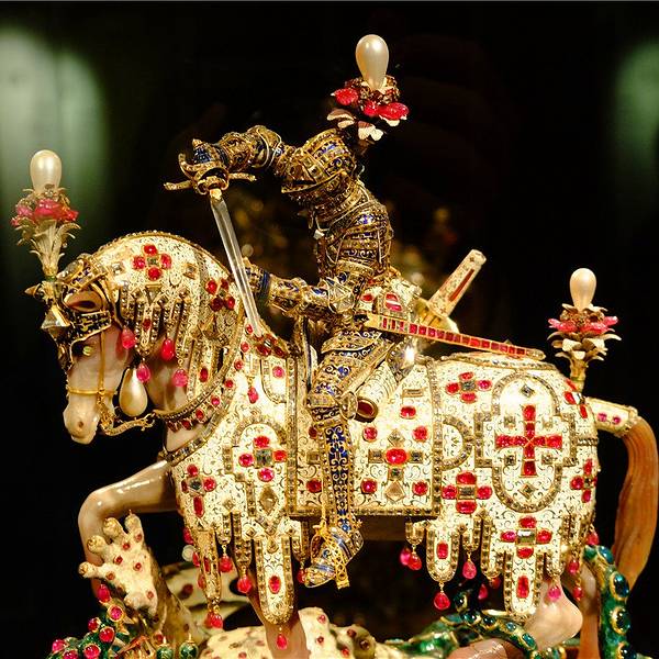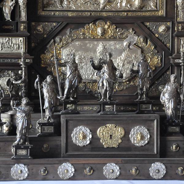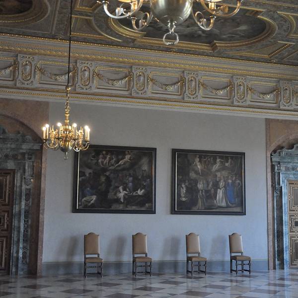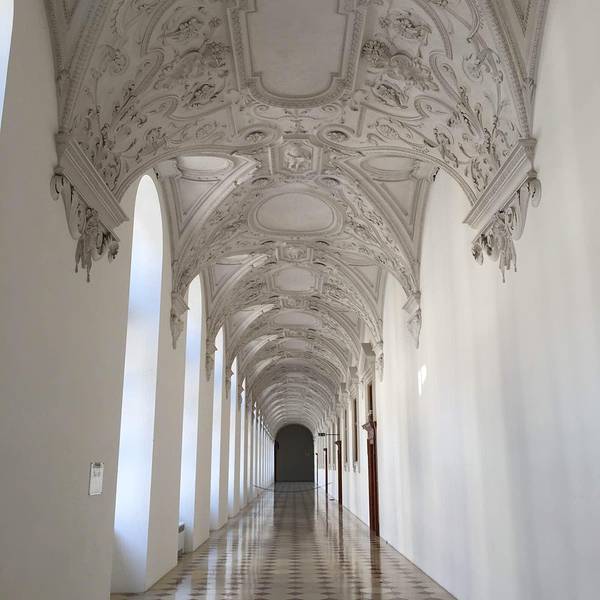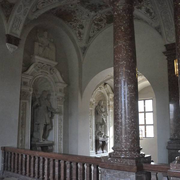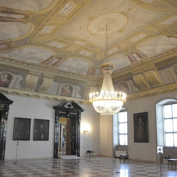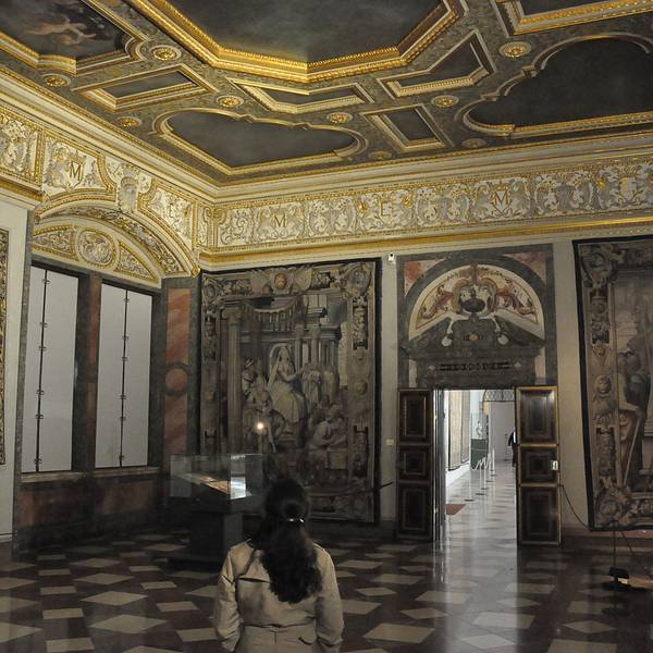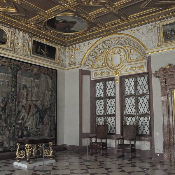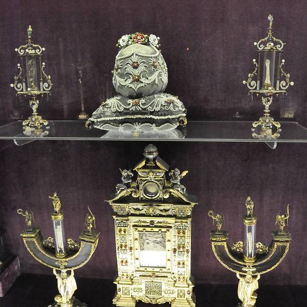 王宫博物馆最精彩的部分是“古物陈列馆”大厅,穹顶及四周都是精美的壁画,普遍被认为是阿尔卑士山北部最好的文艺复兴室内设计典范。除此之外,大多是挂满巨幅挂毯的各种会客室、卧室和小礼拜堂等等。在这里看到不少精美的中国瓷器,包括装饰用的花瓶,日常使用的经过改造的餐具等等,甚至有一间房间里全部用中国的青花瓷器来装饰,来自神秘东方的一切事物在那个年代是很时尚的。王宫博物馆附带的珍宝馆,也是不能错过的。这里按照珠宝的材质和年代等,分门别类进行展出。王室以及教廷的皇冠、珠宝、礼仪用具等等,珠光宝气,闪烁着耀眼的光辉。王宫博物馆及珍宝馆开放时间为4月1日至10月19日9:00-18:00, 10月20日至次年3月10:00-17:00(游览时间大约在三小时左右或者需要更长时间)。