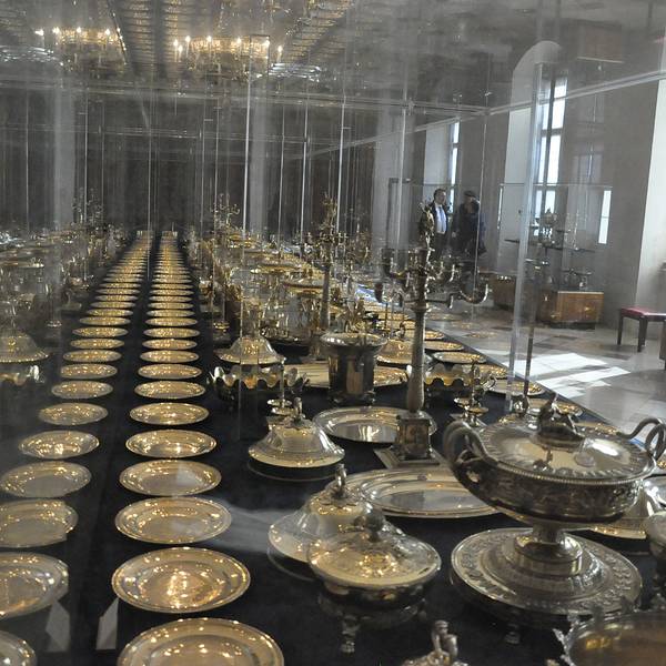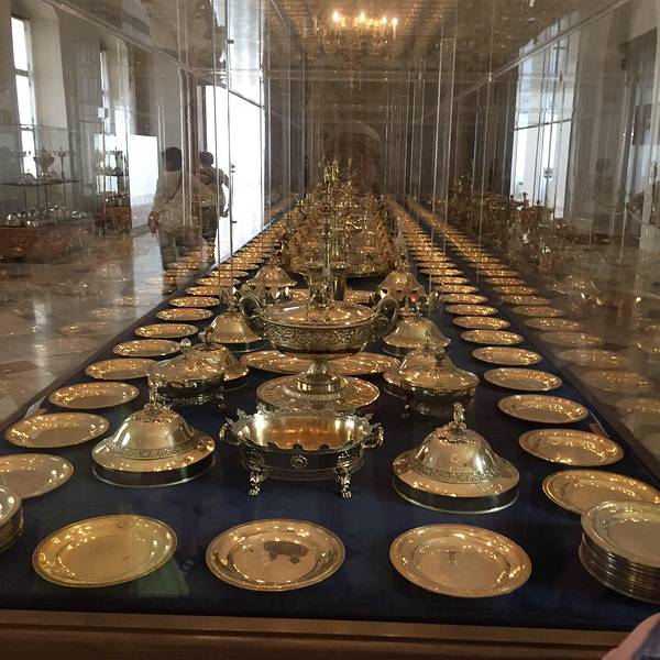 参观完王宫就去旁边的珍宝馆了,这时我们就碰上了一大拨小屁孩游客团正在进入王宫,哎呀,还好又错过他们了~此时的珍宝馆人很少,正是参观的好时候!珍宝馆里都是各种金银细软、首饰珠宝、权杖宝剑等,看得我那叫一个垂涎三尺,目不转睛啊!如果我能戴一下,感受下远古的呼唤,该是多美好的体验啊【真是欲戴皇冠 必承其重,不能低头,双下巴会出来】【这一顶就比较居家,小巧一点,还有戒指配套】【如果没有大白胸脯,戴着这个应该也撑不起~(果然欧洲都是白胖比较吃香啊)】【以下十元均一啊,快来抢哦~】【这才是皇冠,以及权杖,太有气场了,隔着玻璃都被震出内伤】【这个感觉是太后才能戴的吧,鸡血红宝石那么大一颗,啧啧】【这个很像魔卡少女樱里面的变身棒啊,萌萌二次元!】【以及别人家的护肤品盒子,我感觉我一个肾都买不起其中一样】【至于这个我没看懂,但感觉这是一个组合的可以收起来的摆设,类似那种小盒子变身的感觉】【刀叉要那么精致,我是真的舍不得拿来切肉啊】【大二那年我玩的国际象棋为何是塑料的~唉】【梳妆台上的瓶瓶罐罐也是很素雅,配套齐全】【再看西方代表的摆设,精致度显然就没我大天朝的高明啦】【不过玩乐的感觉还是很足够的,而且层次也丰富】【从王宫出来发现地面湿了,大概刚刚又下了一场雪吧~】 展开