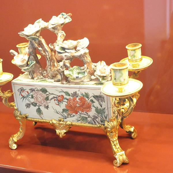逛完几个宫殿就进入到一条长长的走廊,摆满了各种瓷器的玻璃展柜往那么一站。我心里就各种翻滚:嗯哼,还不是抢我们的,可如今我们竟然只能隔着玻璃柜看看呢~唉!不过也幸得是列强们抢走才能保留得那么完好,只是看着墙上的介绍,只字不提那段历史,我也是醉了~什么东亚文化流传之类的话,我都看不下去了【细腻的花纹真的每一个器皿都像一位端庄的少女】【像这种匪夷所思的大象钟,估计是从印度那边过来的?】【而像这样一个巨大的盘子,上面的画都像是描述一千零一个故事】【这一组碟子太可爱了,俏皮的小猫想要爬进来偷吃】【两小孩(鸡)辩日】【巨大的屏风跟唐代绘画上的一模一样】【这一组看着也是绝,花纹如此繁复,丢了一个都觉得不能够】