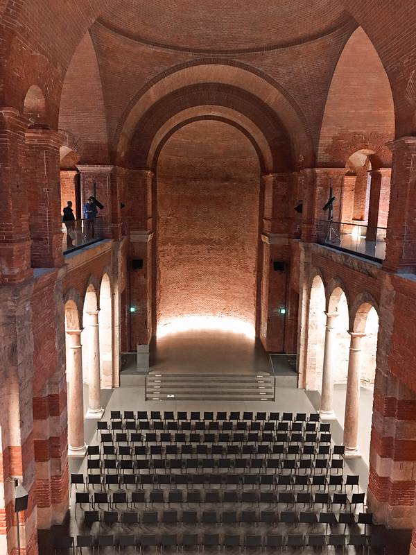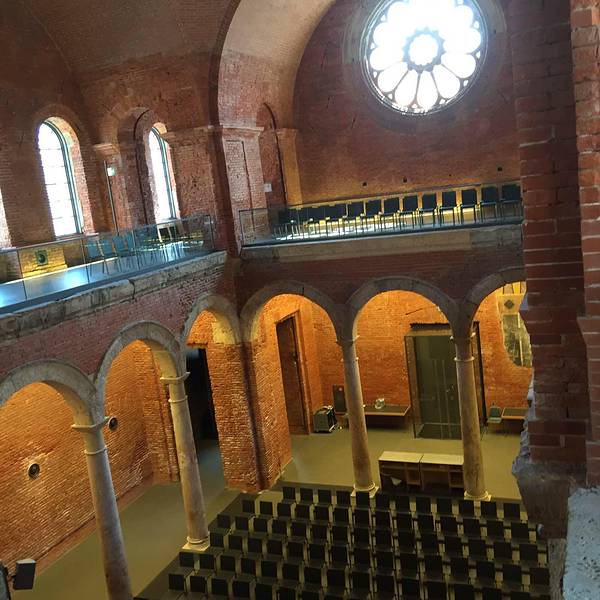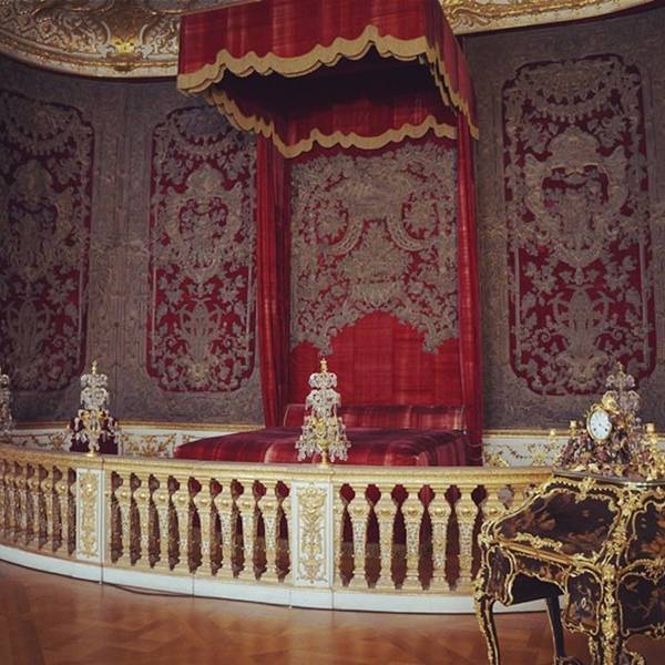 走完一圈看到旁边有个小礼堂,都是红砖圆拱顶,像是未经装修那样,透露着工业的原始气息。底下大概是表演的场地,整齐地摆放着许多把椅子。四边都有窗户透着阳光,最夺目的应该是正中那个花朵一样的圆窗。明晃晃地跟太阳一样,有一种神圣的温柔。整个人到这个空间里都不自觉地沉静下来,受洗礼般得到净化和宁静。【在这里行走,哪怕自己触动了一枚沙子的声响,都觉得很无礼】【然后就进入到一个像是植物园的小房间,充满着森林的神秘气息】【这套精致的茶具可真像我在淘宝看的同款啊 美cry~】【大吊灯在镜子里反射出无穷无尽的自己】【以及皇帝的龙床,一切都是象征着至高无上的地位啊】【这是整座宫殿最贵的一个房间(我清楚地记得这句话)】【整个房间都是镜子以及小照片,窒息感蔓延】