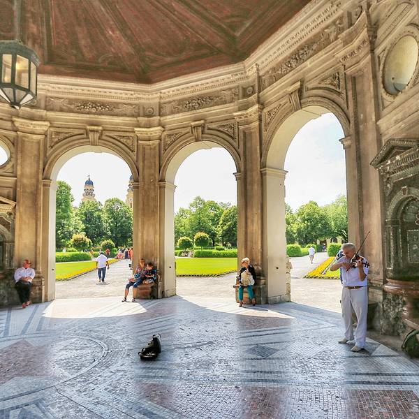 正因为这样,在这个庞大的建筑群之间走了无数圈,都没有找到正式参观的入口已有五百余载历史的慕尼黑王宫,被国家歌剧院、国宾广场和其北侧的王宫花园环绕其间,在经过数度扩建和战火洗礼之后得以重建并对公众开放。位于慕尼黑中心的皇家宫殿与其被称为一座宏伟的建筑,倒不如说是一个庞...已有五百余载历史的慕尼黑王宫,被国家歌剧院、国宾广场和其北侧的王宫花园环绕其间,在经过数度扩建和战火洗礼之后得以重建并对公众开放。位于慕尼黑中心的皇家宫殿与其被称为一座宏伟的建筑,倒不如说是一个庞大的建筑群来的更贴切些。它由宫殿,Cuvilliés剧院,教堂,活动室,回廊,庭院和花园组成。正因为这样,在这个庞大的建筑群之间走了无数圈,都没有找到正式参观的入口。直到看到路边的一个指示牌才发现,原来是施工期间,内部不对外开放,真是遗憾……不过没关系,有那座大大的庭院和花园,也算是不虚此行。艺术无处不在向花园深处走去,隐约听到小提琴声传来~原来是一位老爷爷,合着收音机的伴奏在拉小提琴。小小的亭子,被驻足欣赏的人坐满。我们也情不自禁地坐了下来,加入了欣赏这场小型独奏会的行列。琴声悠扬至极,白发老爷爷的表演也投入至极。我想,他应该比我们更陶醉更享受吧…… 展开