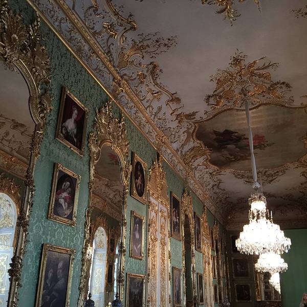 王宫内部和珍宝馆都是要分别购票的,我持的是通票,所以也是换票就能进去了。而王宫的语音导览器是免费提供的,跟个大勺子一样,不过没有中文的,只有英文。小伙伴们就当作练习英语听力咯~工作人员会很热情地指引你使用语音导览哒~另外,如果有背大包和穿大衣的小伙伴,需要在入门处存包挂衣服,这些都是很方便的。再一个是,从音乐广场那条路过来,可以顺道摸一下王宫石狮子。【售票入口的圆形屋顶就纹有繁复华丽的图案,跟外观已经形成强烈的对比了】【第一个进入的展厅里全是瓷器,瓷器塑造的雕像众多,也让人连连惊叹】【感觉这个人在唱歌还是在诉说什么】【巨大的铁窗外是生机勃勃的攀藤,给幽闭的空间带来生气】【布满壁画的长廊深不见底 好像走到画里一样】【窗外透着的光给背对的雕像加上了逆光的效果,有种神圣的感觉】【走累了可以坐在高高的台阶发呆,任凭双脚晃动不着地】【通道尽头躺着个小天使,睡得正香甜呢】【这张图叫做:什么,你们在我背后说我帅?】【不晓得是在维修还是真的是当年的画,real立体也是良心之作啊】【富丽堂皇的大厅还有翡翠色 真的比大黄大红要养眼多了】