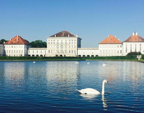 宁芬堡是斐迪南·马里亚亲王送给妻子的礼物,感谢她生了儿子使王国有了继承人。它的扩建工程前后花了200年时间。虽然这座宫殿没能达到法国国王路易十四王宫那样的规模,但却是德国这类宫殿中最大的一座。庆幸的是,这座宫殿也是二战期间唯一未被损坏的宫殿。宫殿前院大花园养了一大群天鹅和海鸥,时而嬉戏欢闹时而窃窃私语,映衬着环绕四周的绿林石雕,好一幅时光静逸图