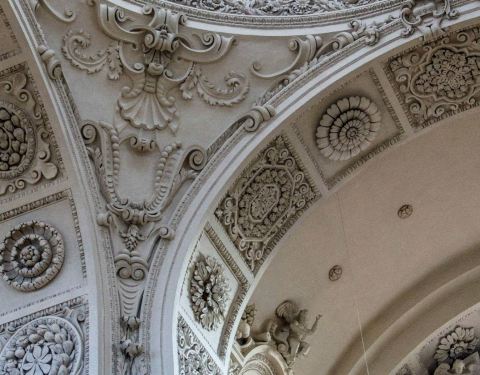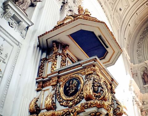 黄色的外观,浓厚的巴洛克风格,白色的内部雕刻高贵素雅。